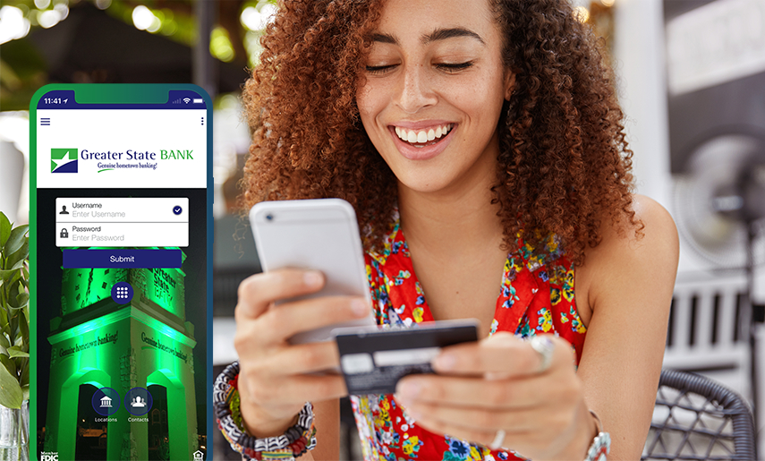 Bank on the go with mobile banking from Greater State Bank. Download our mobile banking app for FREE to get quick and easy access to your accounts anywhere you travel. Check your balances; pay bills; transfer funds; and locate ATMs and branches, all from your mobile device. Fast,secure, and compatible with both Android and Apple devices, this app makes it easy to manage your finances!